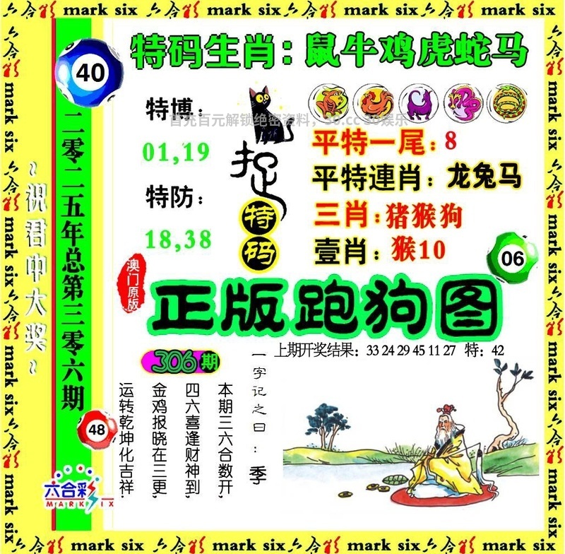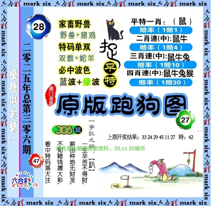 | 307期 | 鼠 | 绿双 | 2尾 | 开狗20 |