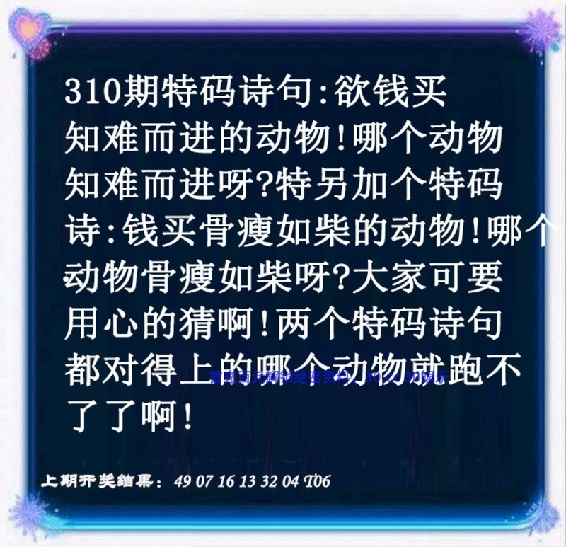 | 310期:天地两肖【地肖+龙马】开:發00准 |